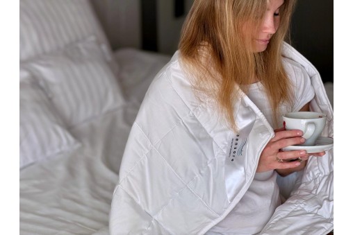 Wysokiej jakości kołdra obciążeniowa dwuosobowa uszyta z tkaniny bawełnianej premium z polskiej tkalni, posiadającej certyfikat OEKO-TEX Standard. Wypełniona mikrokulkami szklanymi.