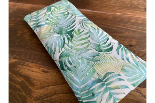 Opaska relaksacyjna na oczy ma zastosowanie podczas relaksacji, medytacji w pozycji leżącej a także podczas zasypiania. Zestaw posiada praktyczny pokrowiec w przepiękny wzór w liście tropikalne, monstera itp.