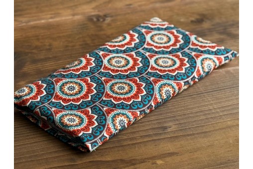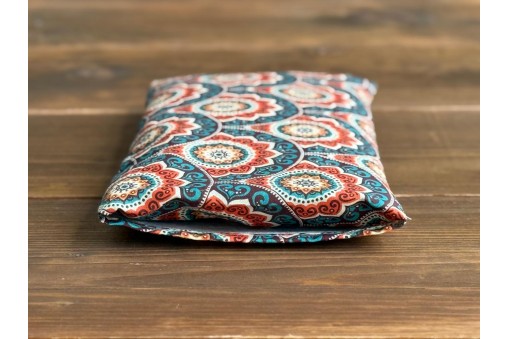 Przenieś się w świat orientu z naszą serią "Ajurweda", której poduszeczka relaksacyjna wyróżnia się pięknym i bogatym, mandalowym wzorem. Intensywne odcienie turkusu, rdzawego pomarańczu i głębokiego brązu, przeplatające się z delikatnymi akcentami, tworzą kompozycję inspirowaną starożytną sztuką i filozofią wschodu. Ten harmonijny design nie tylko cieszy oko, ale także wizualnie wspiera wyciszenie i koncentrację, czyniąc tę poduszeczkę nie tylko praktycznym narzędziem relaksu, ale i estetycznym dodatkiem do Twojej przestrzeni spokoju. Wzory nawiązujące do tradycyjnych motywów indyjskich idealnie uzupełniają jej prozdrowotne właściwości, tworząc spójną całość, która sprzyja odnalezieniu wewnętrznej równowagi.