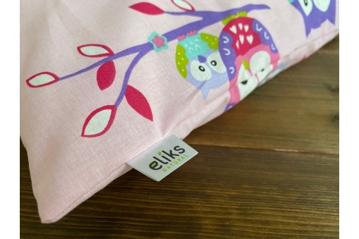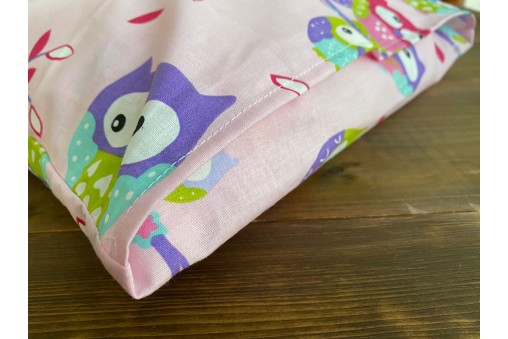 Bawełniana poszewka na poduszkę w kolorze różowym - wzór w sówki. Przepięknie prezentuje się szczególnie w połączeniu z białą lub różową pościelą.